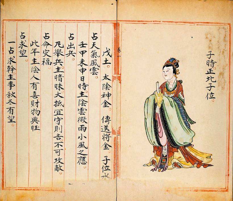 古籍「六壬圖像」是解釋占卜的內容,每一頁都有手繪圖像。 圖/國圖提供