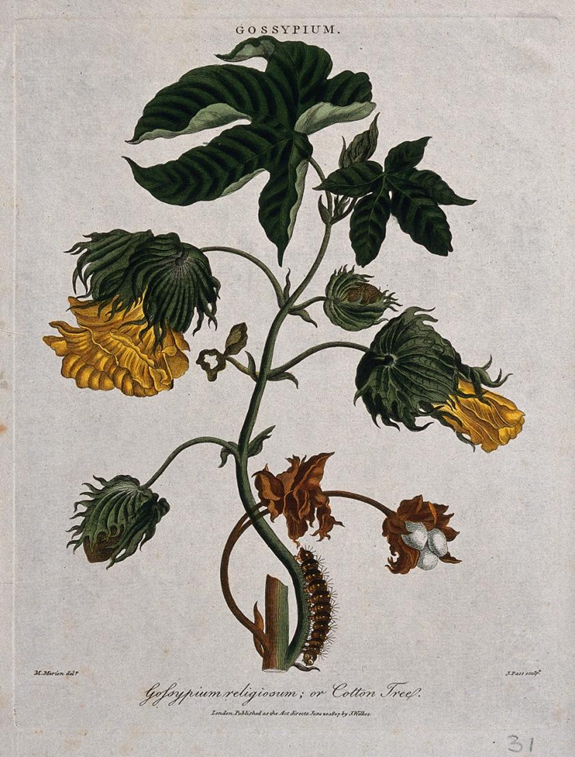 根据语源学的考察,棉花一词来自梵语和阿拉伯语。汉语海南方言与黎语的读音与梵语和马来语接近,可见黎语和汉语海南方言对棉花这一植物的称呼,均与梵语和马来语同源。阿拉伯语以“qutn”或“qutun”描述棉花植物,通过古意大利语“cottone”和古法语“cotton”传入英语,体现出与棉花种植和使用相关的历史贸易与文化交流。“棉花”本意特指包裹棉籽的柔软纤维状物质,后随时间推移逐渐涵盖了棉籽以及由棉花制成的织物。