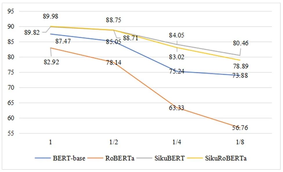 结果表明,Siku系列模型在去标点繁体语料上表现优异,SikuRoBERTa模型较SikuBERT模型在大规模语料上的表现更为稳定。