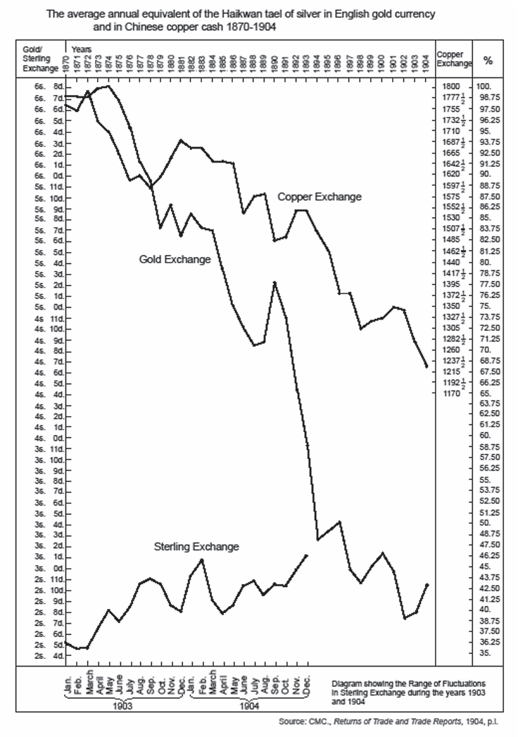 图9 1870—1904年;海关银两/铜钱/英镑比价