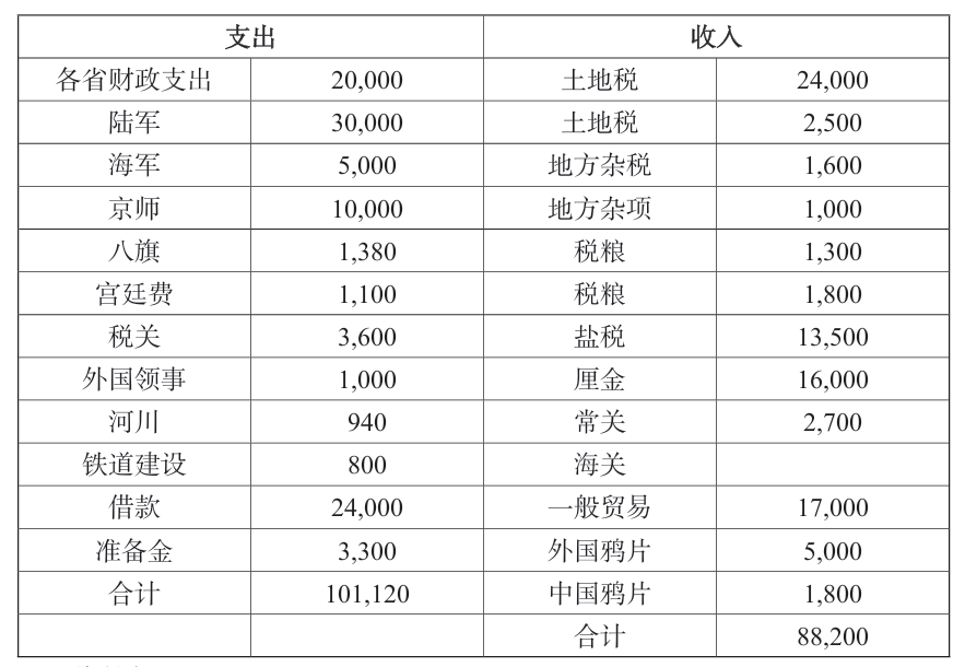 表3 中国财政收支(1901年,罗伯特·赫德的估算,单位:10,000两)