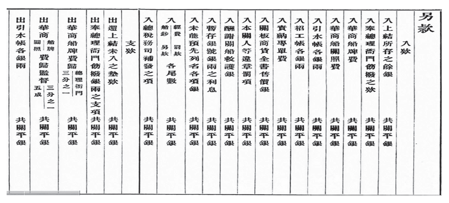 接下来我的介绍集中在早期19世纪70年代的海关财政费用项目,我将对这些收支项目进行详细的介绍。