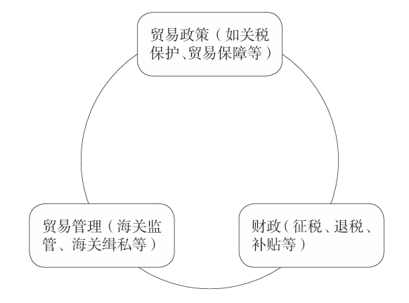 关于海关的职能,也具有一个三角关系。从贸易管理的角度来看,海关职能一般可以分为贸易政策(关税保护、贸易保障等),贸易管理(海关监管、海关缉私等)和财政(征税、退税、补贴等)三个方面,其中以财政和贸易管理最为基本,清末海关面对的问题是这三种职能之间所存在的矛盾关系。