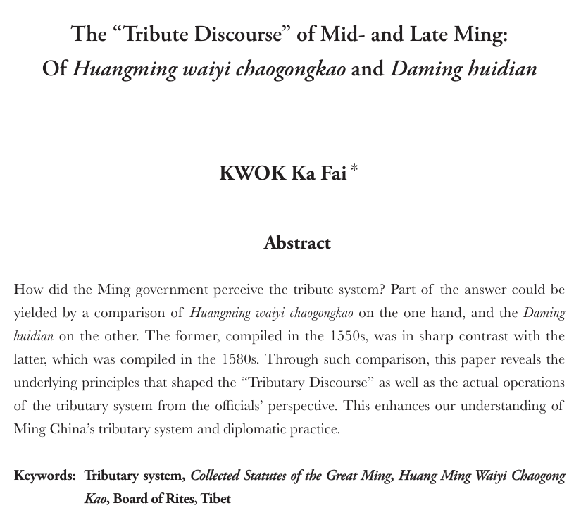 作者按:本文為香港政府研究資助局優配研究金資助項目「斟酌祖制:從皇明條法事類纂等法制史料看弘治問刑條例的成書及十五世紀中國的社會經濟變遷」(編號:12604820)部分成果,並曾以〈明代政典中朝貢記述的演變及其意義——以《皇明外夷朝貢考》與《大明會典》為例〉為題,發表於 2023 年 10 月 8 日至 11 日,由北京師範大學歷史學院古籍研究所、中國社會科學院古代史研究所、香港理工大學中國歷史及文化學系主辦的「第十二屆中國古文獻與傳統文化學術研討會」上。承蒙三位匿名審查人惠予建議,吳昭儀同學協助校對,謹致謝忱。